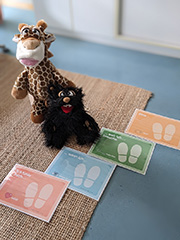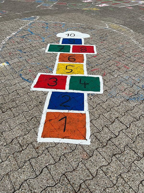 farbenfrohe Hüpfspiele, ein kreativ gestalteter Schlangenweg