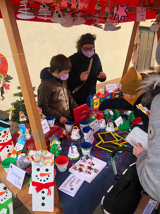 am 3. Dezember selbstgebastelte Weihnachtsartikel auf dem Dorfmarkt