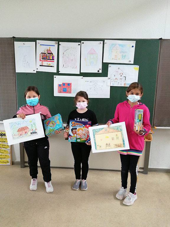Bei einer Verlosung im Rahmen des Grundschulwettbewerbes